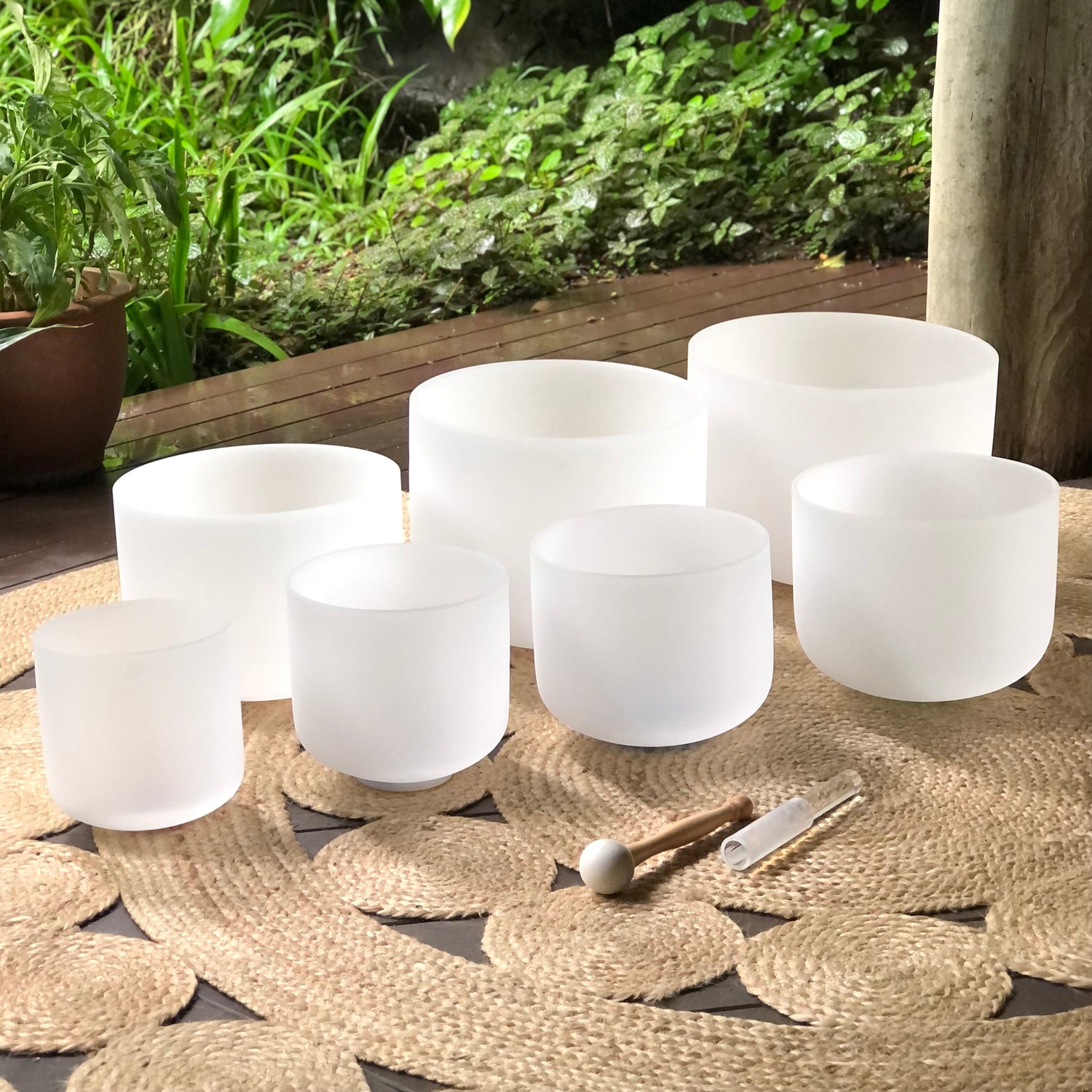 Learn the art of sound frequency healing with our exquisite collection of Crystal Bowls. All our crystal is made of 99.9% pure quartz crystal from Western Australia. It is specifically tuned to 432Hz to allow the best sound and vibrational healing.